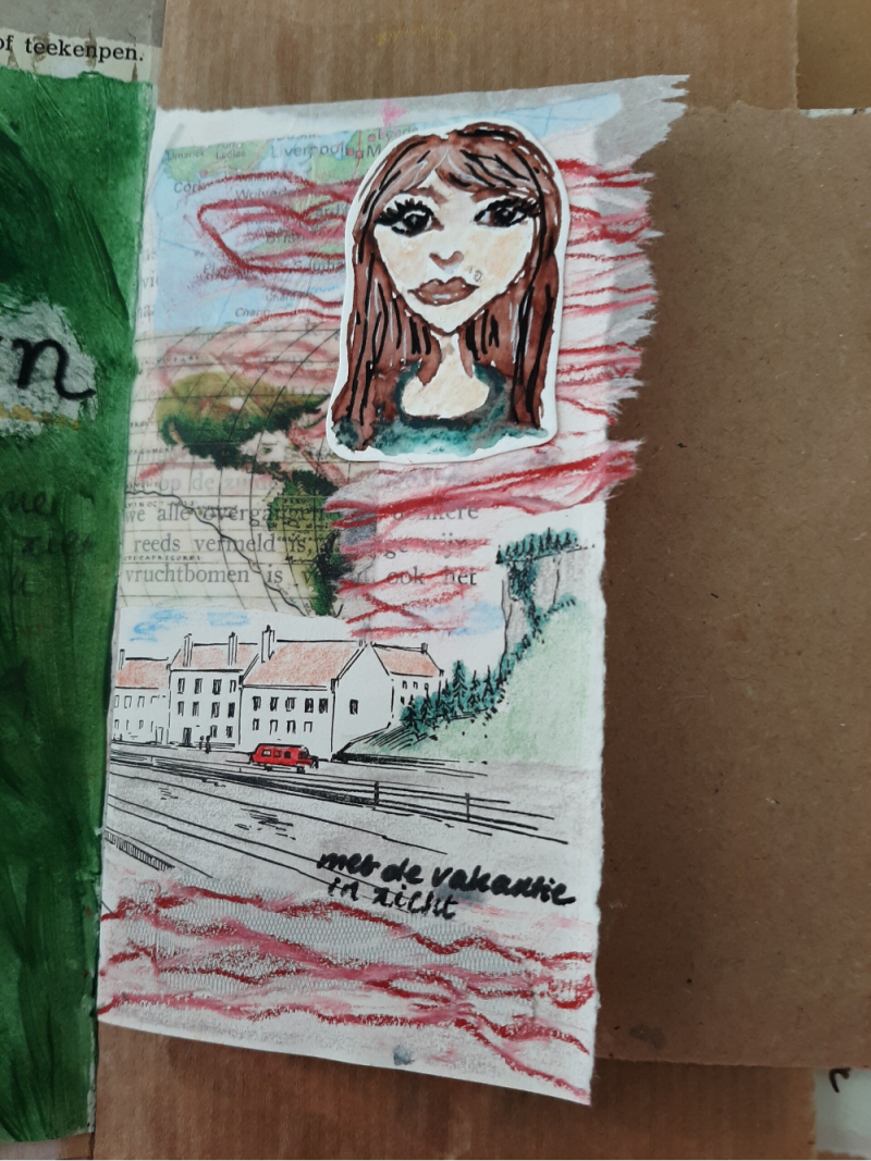 Ik zal een foto hieronder delen van de artjournalpagina met gezichtje. In de video zie je me die dus niet toevoegen. Ik neem je weer graag mee in het maken van deze artjournalpagina. Ik hoop dat je er weer inspiratie uit kunt halen voor jouw eigen artjournal. En als je op vakantie gaat binnenkort, alvast een heel fijne vakantie!