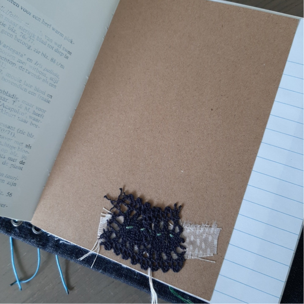 Het gehele journal is handgemaakt. Dit journal is navulbaar met eigen papier. Omdat alles uitneembaar is, kun je zelf de volgorde van je pagina’s bepalen en kun je een pagina die je wilt gaan bewerken of schrijven eruit nemen als je dat fijner vindt werken (elastieken). Op de kaft is stof geborduurd. De kaft is gemaakt met hard karton beplakt met stof. Het journal is 15 x 17 cm. De vulling bestaat uit 76 pagina’s (met voor- en achterzijde 152 zijdes). De pagina's zijn kleiner dan de afmeting van het journal. Het journal bestaat uit dik en dun papier, papier met tekst, print, lijntjes, craft, heel dun en dikker papier. Het journal bevat 4 tags (boekenleggers) en 1 inserts, waar je dingen in kunt stoppen en er zijn kleine papieren en stoffen versieringen toegevoegd op sommige pagina's. Klik op bekijk details voor meer foto's.