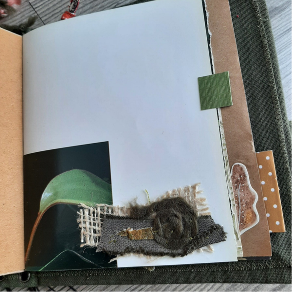 Dit artjournal is navulbaar met jouw eigen papier. Omdat alles uitneembaar is, kun je zelf de volgorde van je pagina’s bepalen en kun je een pagina die je wilt gaan bewerken of schrijven eruit nemen als je dat fijner vindt werken (elastieken). De kaft is van hard karton gemaakt en met stof beplakt. Het journal is 17 x 15 cm. De pagina's in het journal zijn kleiner. De voorzijde is handgestikt. De vulling bestaat uit 70 pagina’s (met voor- en achterzijde zijn dat 140 zijdes). De pagina’s bestaan uit dik en dun papier. Het journal bevat stof hier en daar handgestikt, tabs, 2 tags, paar kleine aquarelplant versieringen. De pagina’s bestaan uit dik en dun papier en bestaat uit lijntjespapier, gedesigneerd papier, boekpapier en blank papier. Druk op bekijk details voor meer foto's.